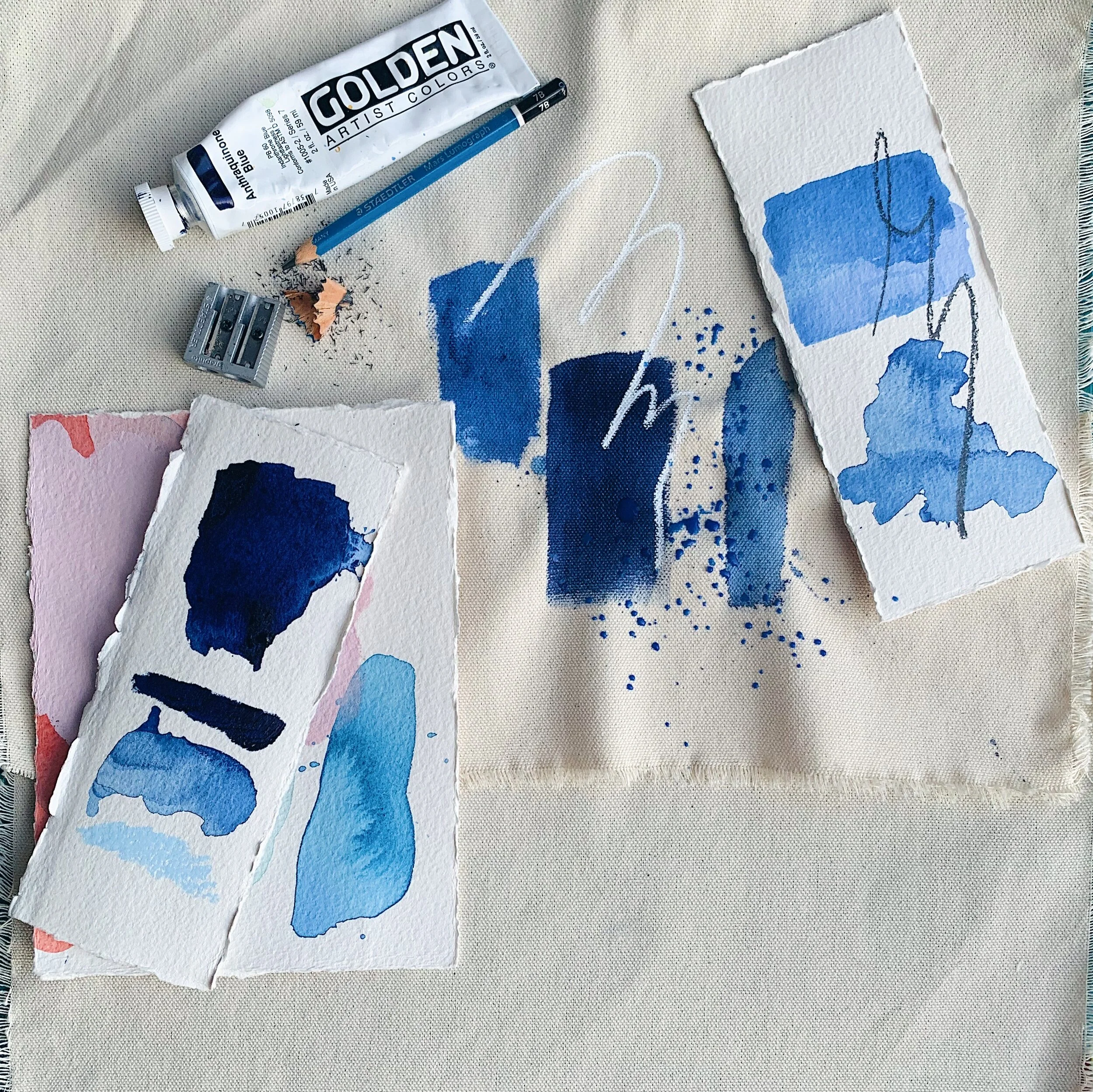 I have been able to find these moments in the solace of painting, where ideas and thoughts take form through layers of paint and colour, regaining their newness, their freshness. By methodically painting these ideas out, it allows me to revisit and reflect, truly allowing me to feel their impact as they flow out of my mind and onto the canvas.
